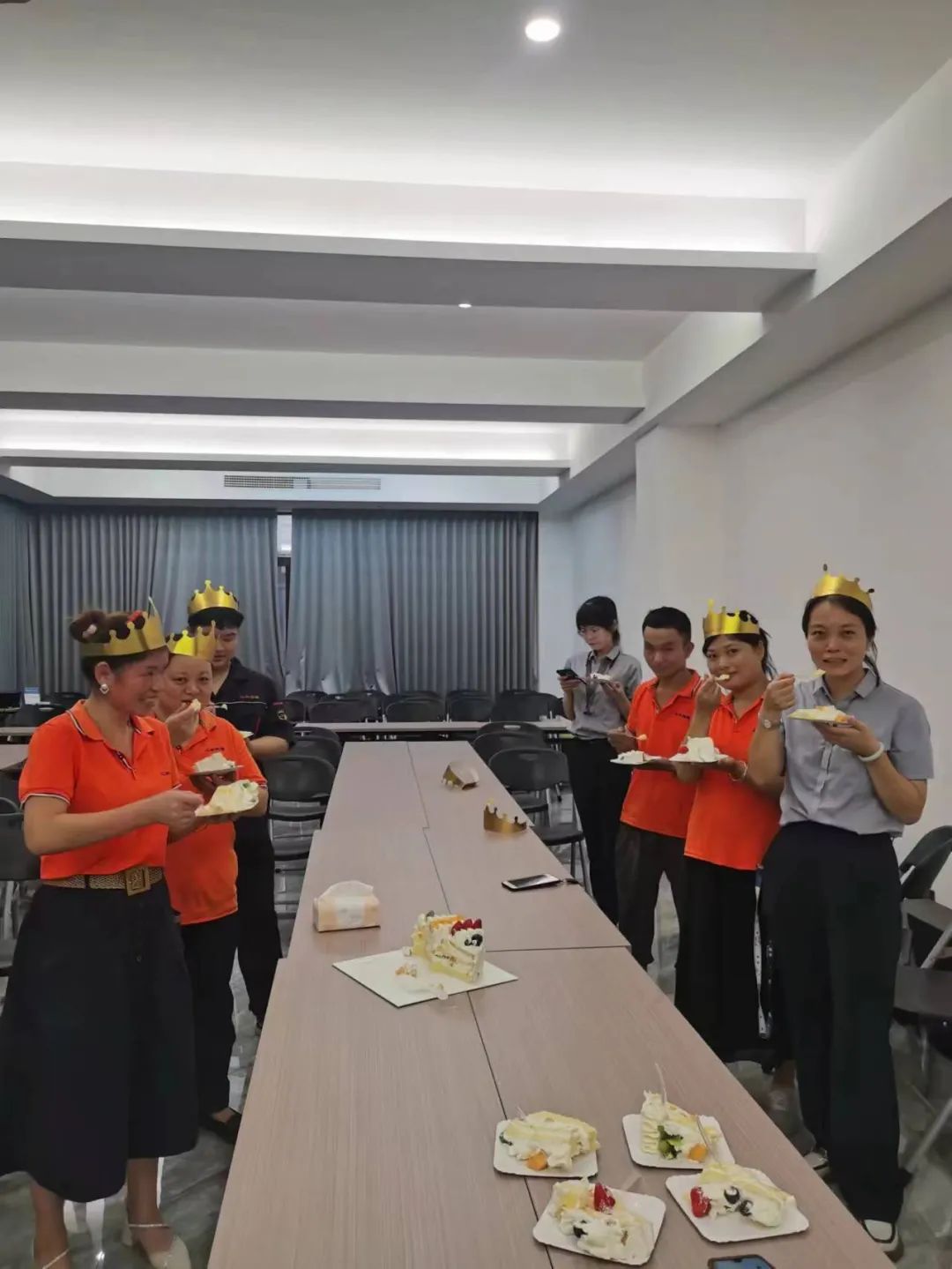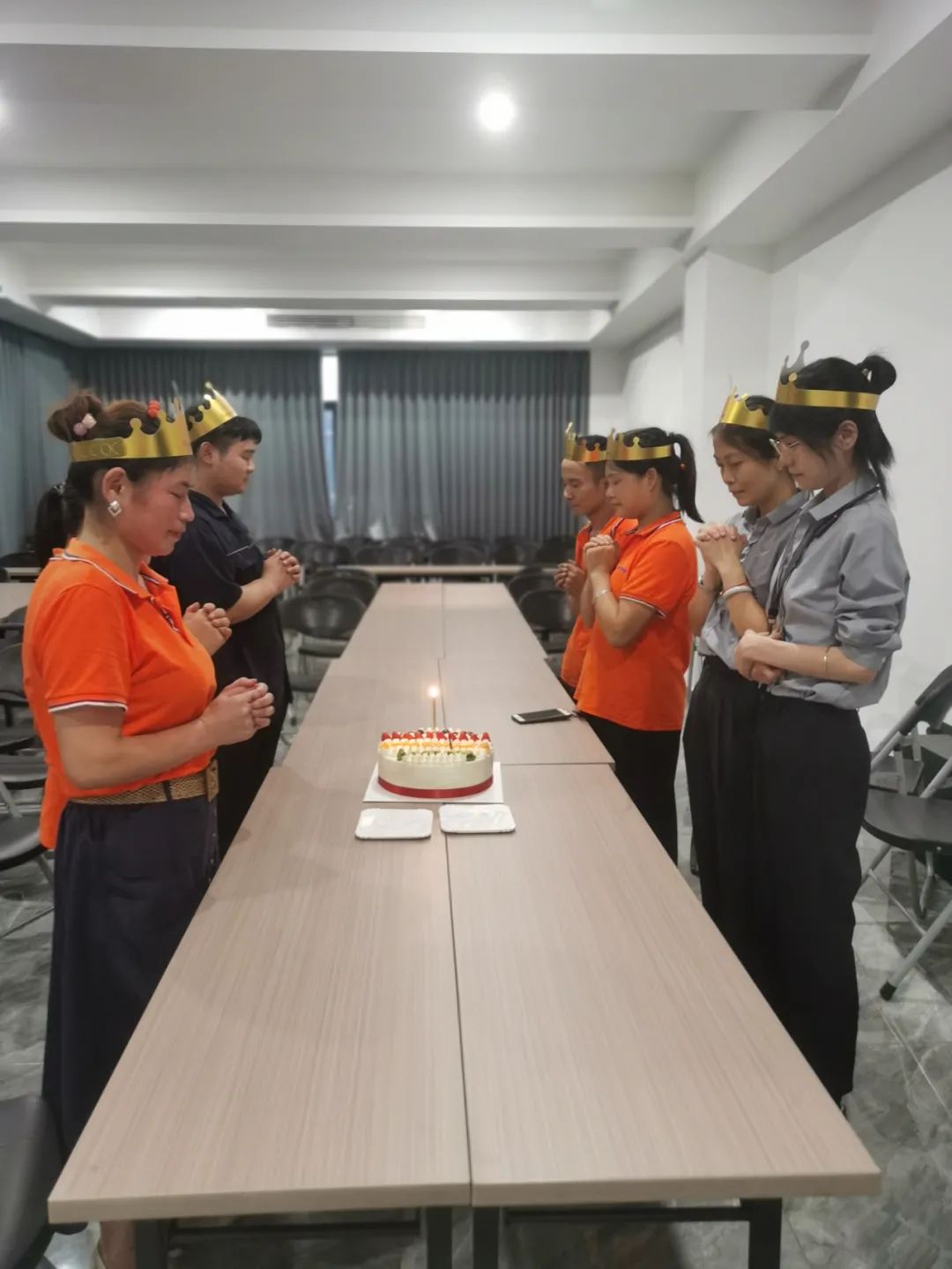 公司為過生日的伙伴們準(zhǔn)備了蛋糕。來,點上蠟燭,我們閉上眼,一起來許一個愿望吧!