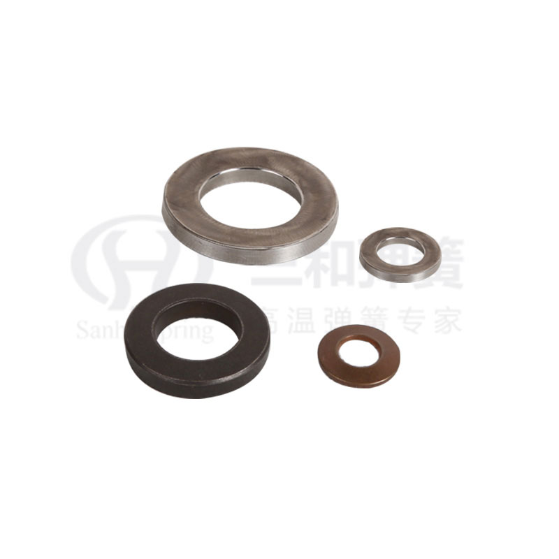 碟形彈簧又名貝勒維爾彈簧墊圈,是法國人貝勒維爾發(fā)明的,其成圓錐形盤狀,既可以單個(gè)使用,又可以多個(gè)串聯(lián)或并聯(lián)使用,在上內(nèi)緣和下外緣處承受沿軸向作用的靜態(tài)或動(dòng)態(tài)載荷,被壓縮后產(chǎn)生變形,直至被壓平,以儲(chǔ)存能量形式作為活載荷。在需要時(shí)自動(dòng)轉(zhuǎn)化為密封所需要的附加壓縮載荷,來降低墊片、填料使用中對(duì)上緊的持續(xù)要求。
